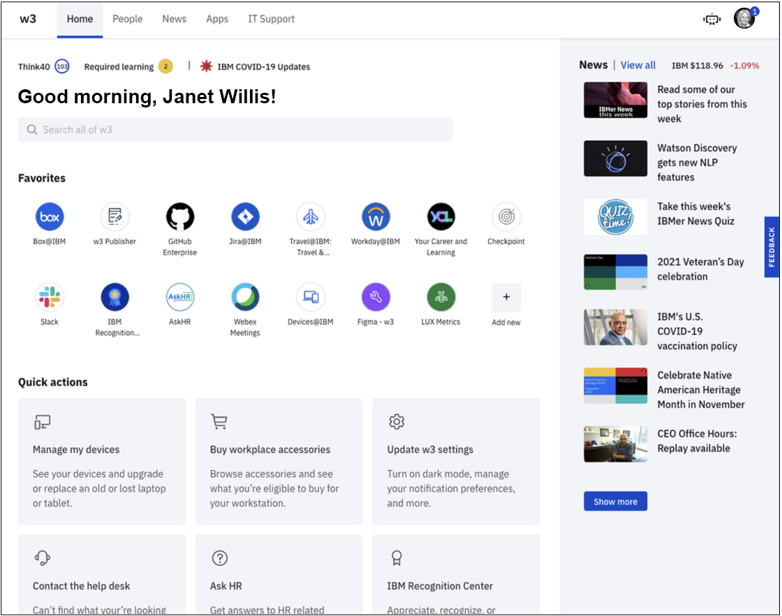 With this design, IBM won the Norman Nielsen award for top intranet sites for 2022.