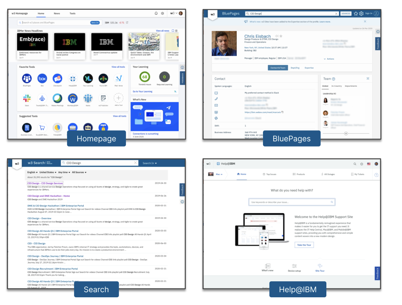 Over years, many useful and critical tools have been created. Some of the most important are: The internal homepage, Search, Help@IBM, BluePages (employee directory). On their own, each of these are important and useful tools, however, traditionally these have all existed independently.