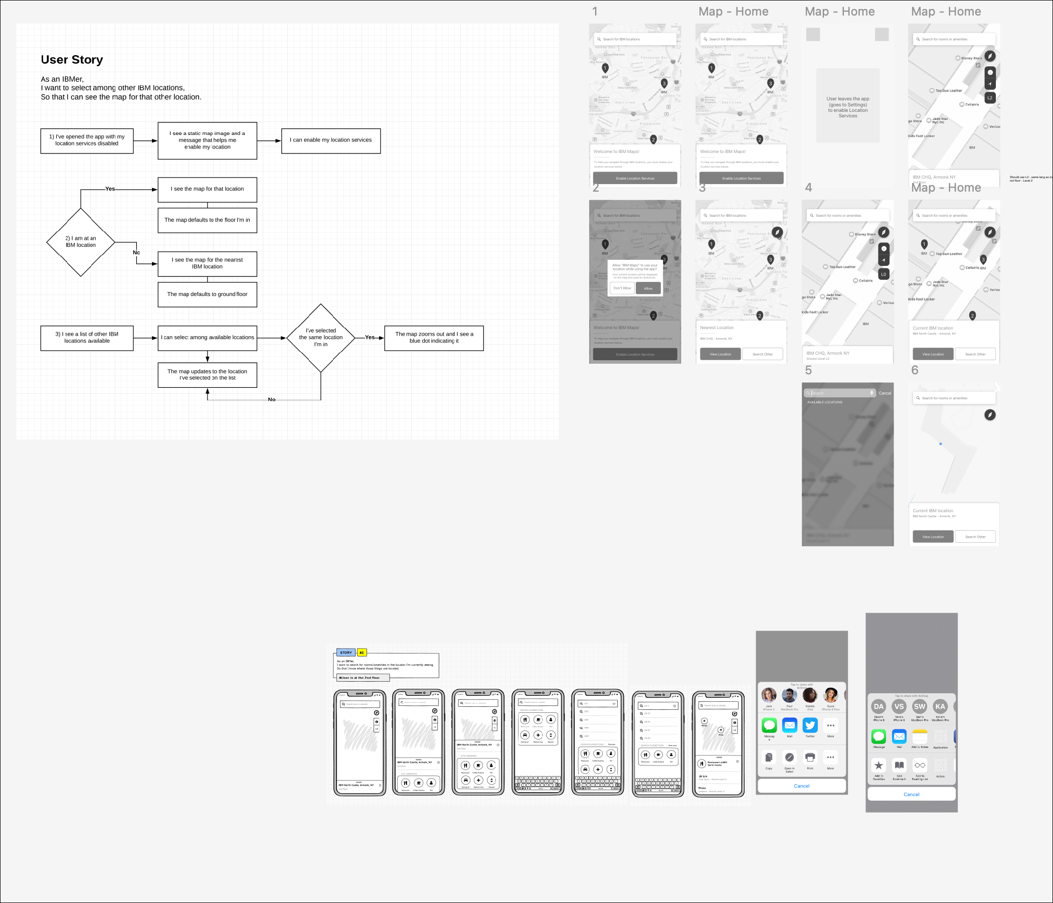 Next, I interviewed as many IBMers as I could (200+) across different geo locations, using a survey and interviews. Using an online survey + interviews, users shared current pain points of navigating IBM buildings, prioritized functionalities, and brainstormed with me on potential features for this app.