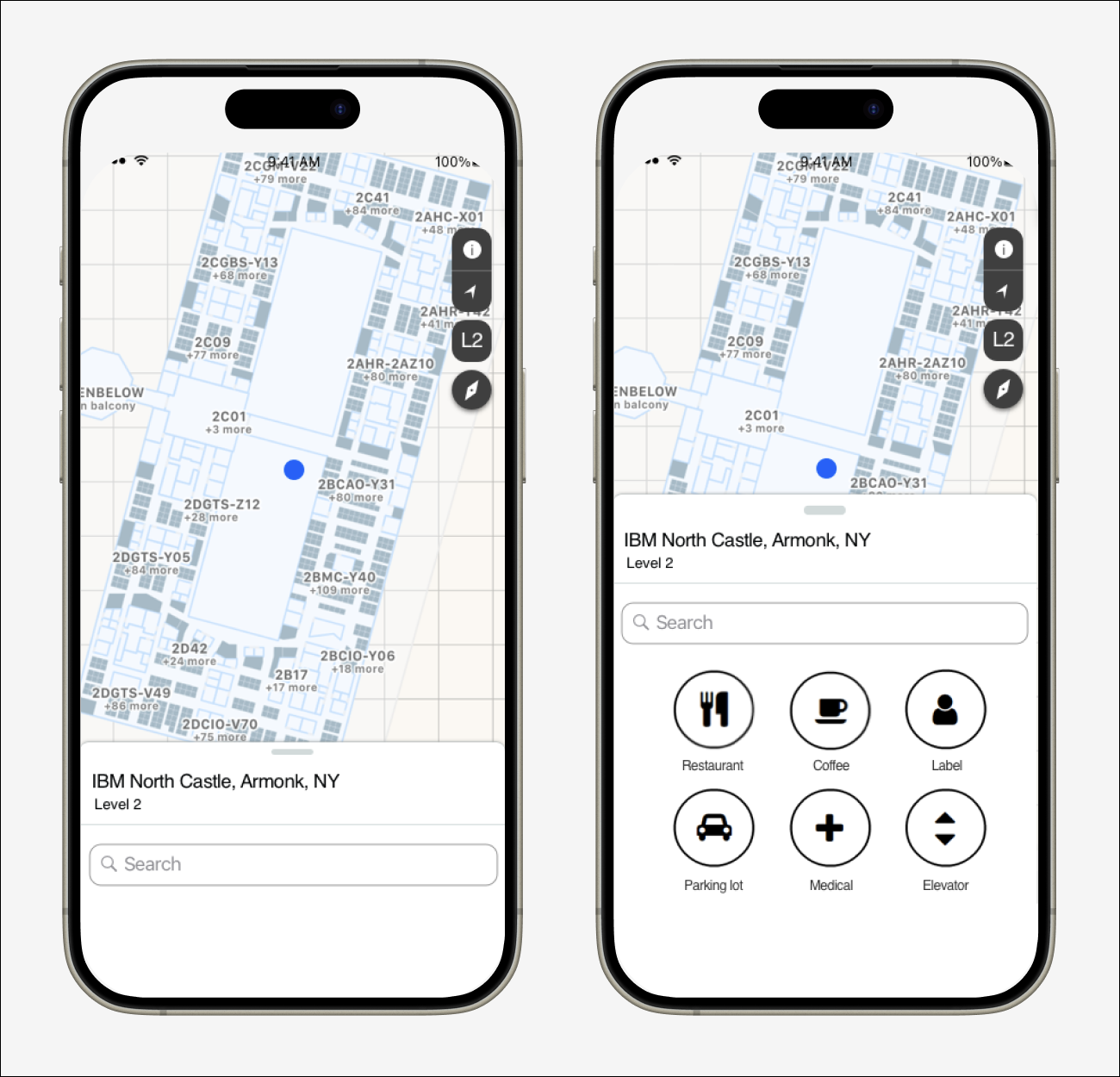 I worked with two developers, a content designer, and a product owner to design and build an indoor mapping application, built with Apple’s indoor mapping Core Location for iOS technology. Our MVP included 5 IBM locations, and its purpose was to help IBMers and guests navigate inside of IBM buildings.